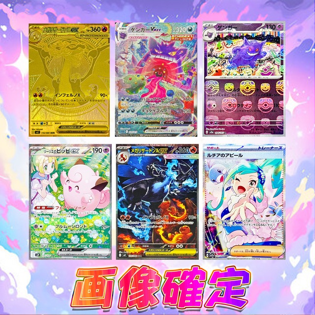 ✨ご覧いただきありがとうございます✨️ ⬇️⬇️ご新規様が無料で遊べる⬇️⬇️ぽてガチャ https://poteoripa.jp/index 公式LINE▶️https://lin.ee/cfymNUI 今なら友達追加で豪華特典❤️ ぽてのオリジナルパック♥️ 全 12パック ⭐️金額⭐️ 1口33,000円 ⭐️封入内容⭐️ 当たり枠 ゲンガーVMAX メガリザードンMUR メガリザードンSAR ゲンガーマスボミラー ハズレ枠8口 リーリエのピッピSAR ルチアのアピールSAR ⭐️購入制限⭐️ なし _______________________ ▷▶【送料・発送】 ・全国一律290円 ・ご入金確認後発送は2日〜5日程 ・商品のご購入後の返金は出来ません、、 ・ご注文後のキャンセルは不可 住所、郵便番号のお間違いのないようにお願い致します(⁎ᴗ͈ˬᴗ͈⁎) ※発送後のトラブルに関しては一切責任を負いません _______________________ ▷▶【カード状態】 カードは1枚1枚確認はしておりますがあくまでも中古品になります。 カードの中には初期キズや横線のあるカードがある場合もございます。 中古であることをご了承の上、購入お願い致します。 プレイ用としてお考え下さい。 多少のキズや汚れのあるものもありますので ご理解の上ご購入お願い致します❣️ _______________________ ▷▶【お願い】 ・中身に関しての評価をされる方は御遠慮ください ※必ず当たると言う事はありません。 ・完売していない商品に関しての 当たり報告は控えるようにお願い致します❣️ ※まだ未開封のお客様もいらっしゃる可能があります 内容をよくお読みなってからご購入よろしくお願いします。