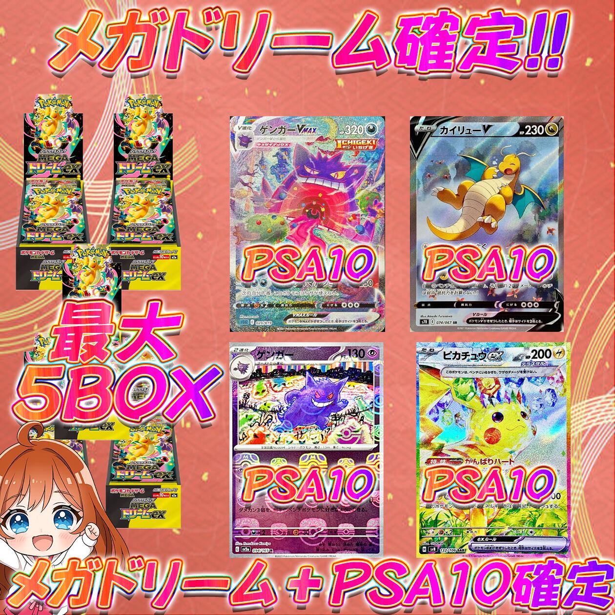 14口限定 メガドリーム+PSA10確定オリパ ポケモンカード メガドリーム最大5BOX!