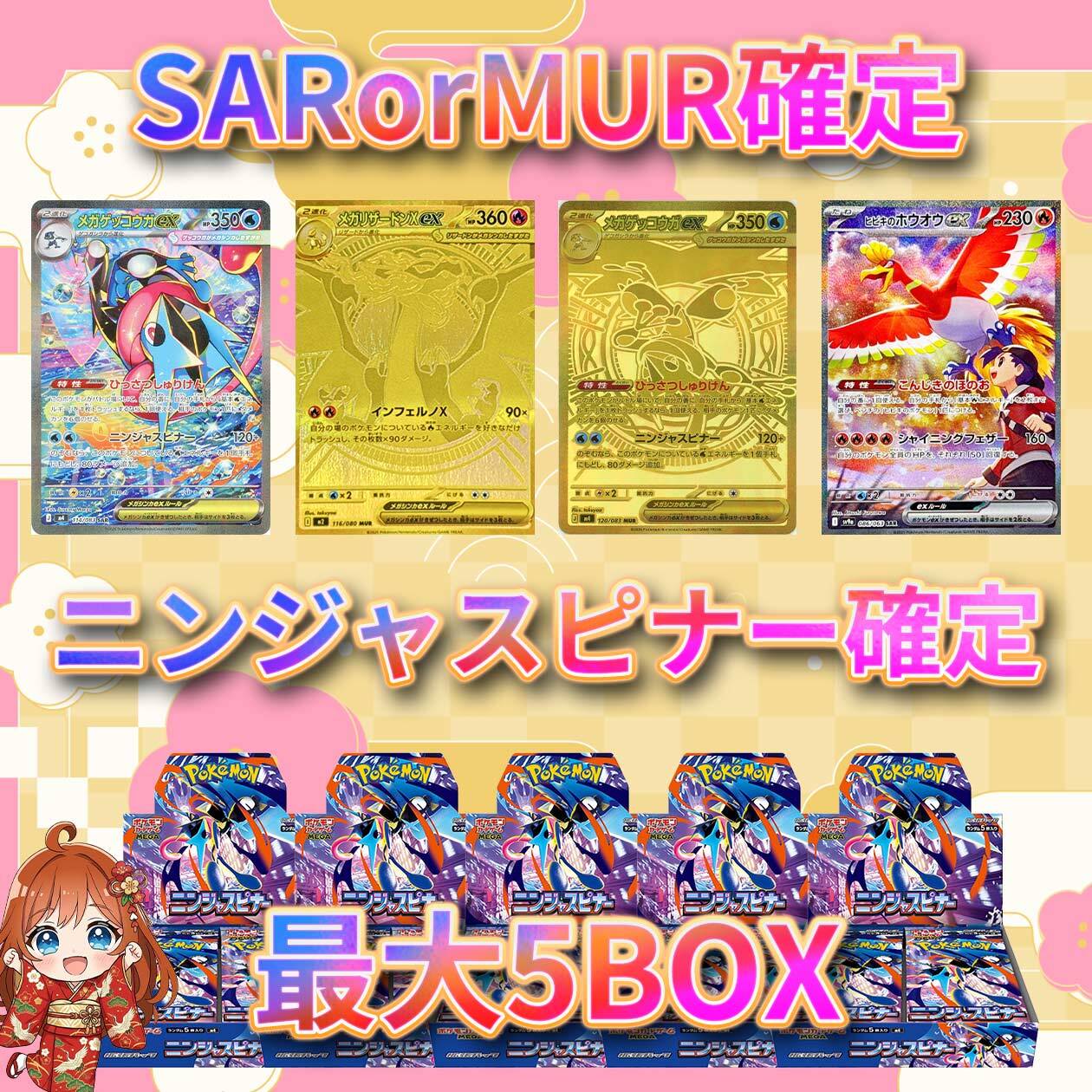 14口限定!! ポケカ 新弾BOX+SARorMUR確定オリパ ポケモンカード ニンジャスピナー確定 最大5BOX