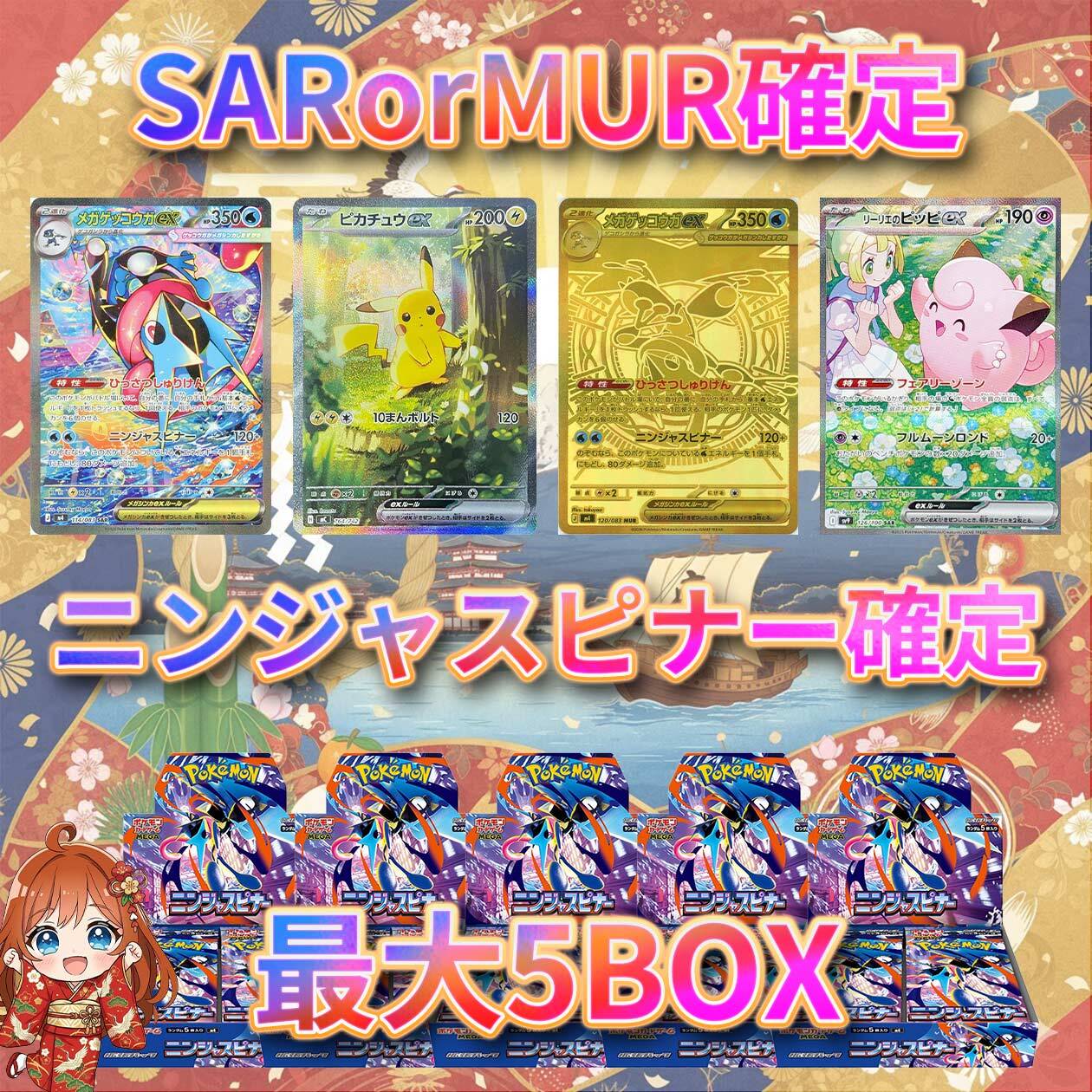 14口限定!! ポケカ 新弾BOX+SARorMUR確定オリパ ポケモンカード ニンジャスピナー確定 最大5BOX