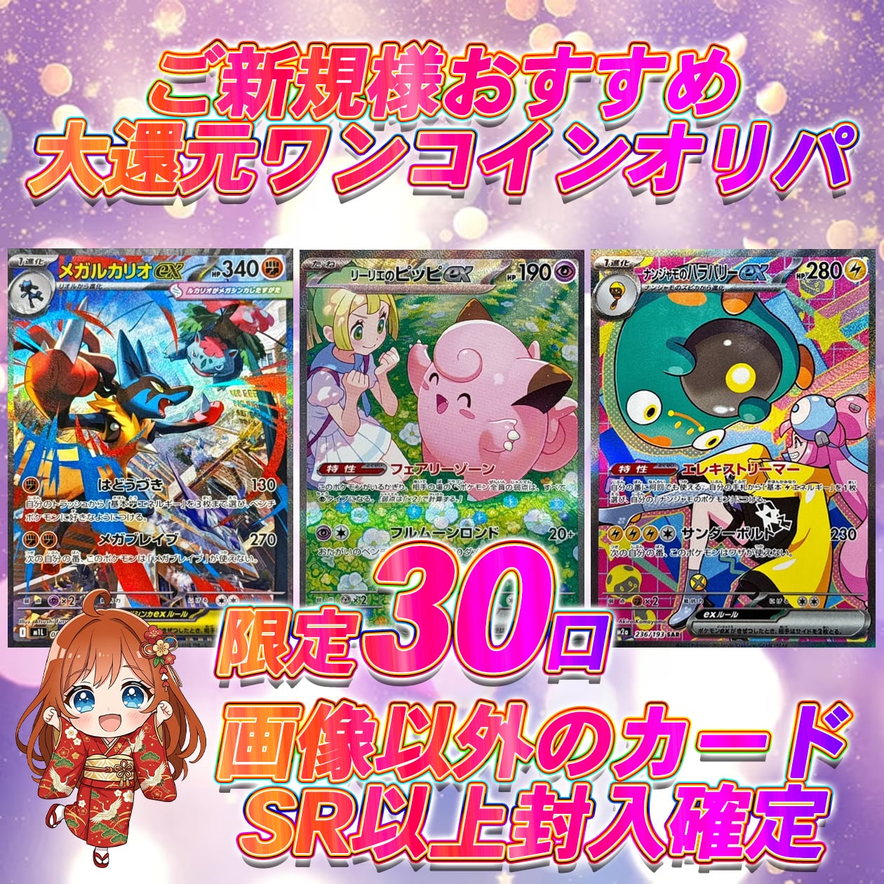 限定30口 ポケカご新規様おすすめ大還元ワンコインオリパ 【画像以外SR以上確定】