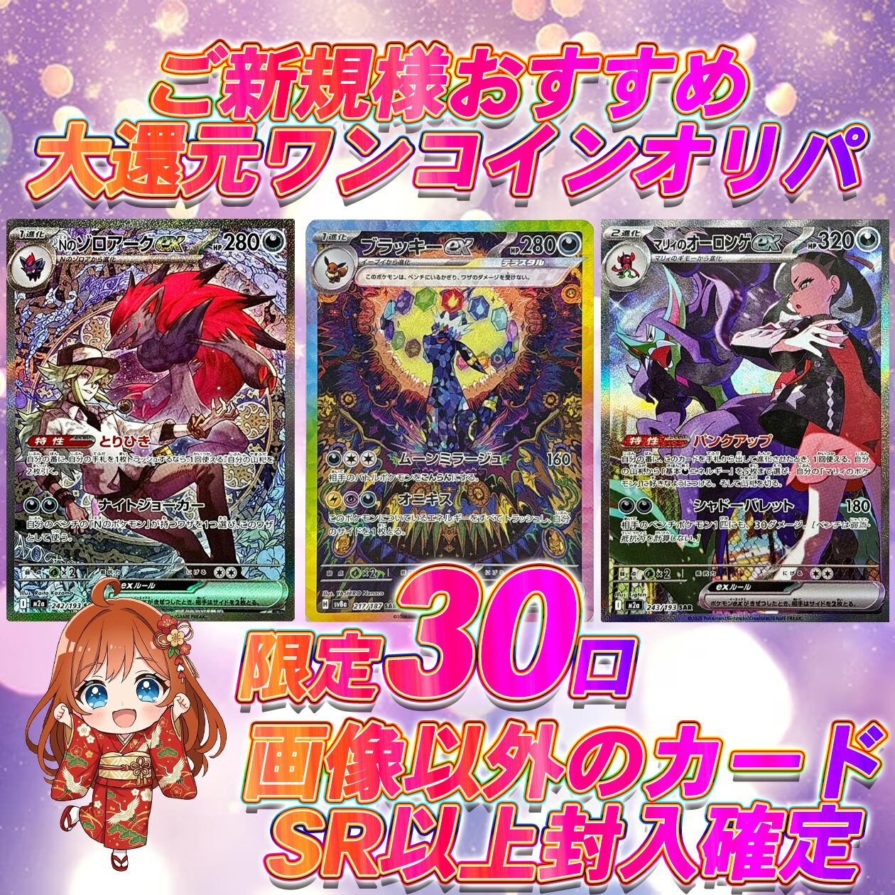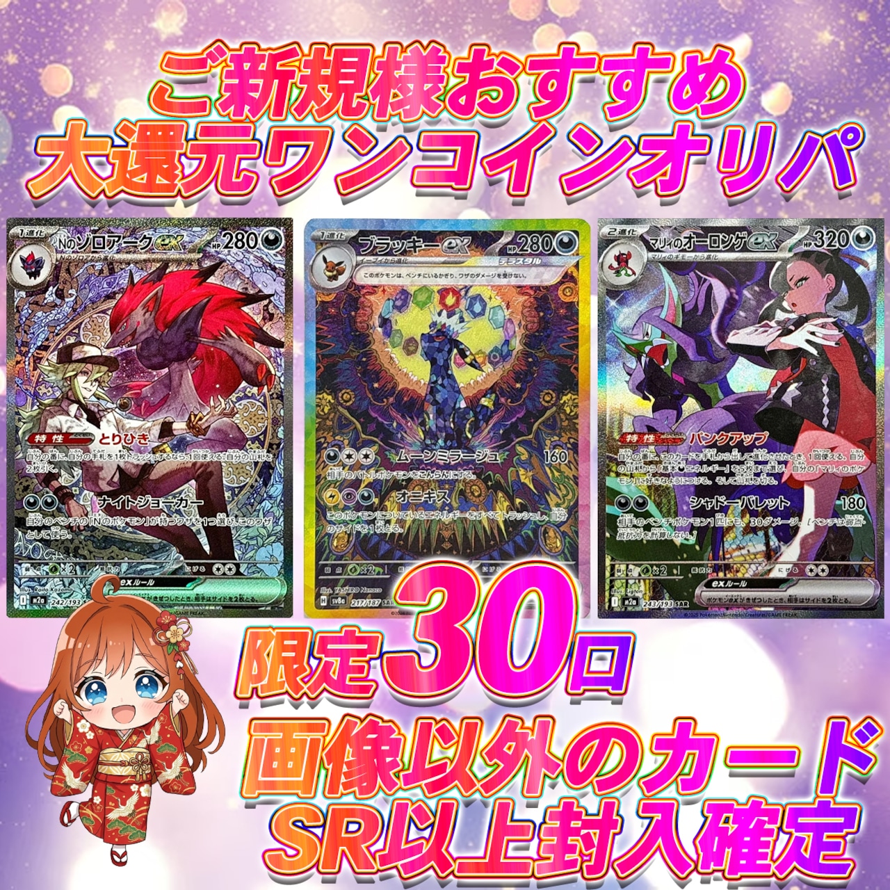 限定30口 ポケカご新規様おすすめ大還元ワンコインオリパ 【画像以外SR以上確定】