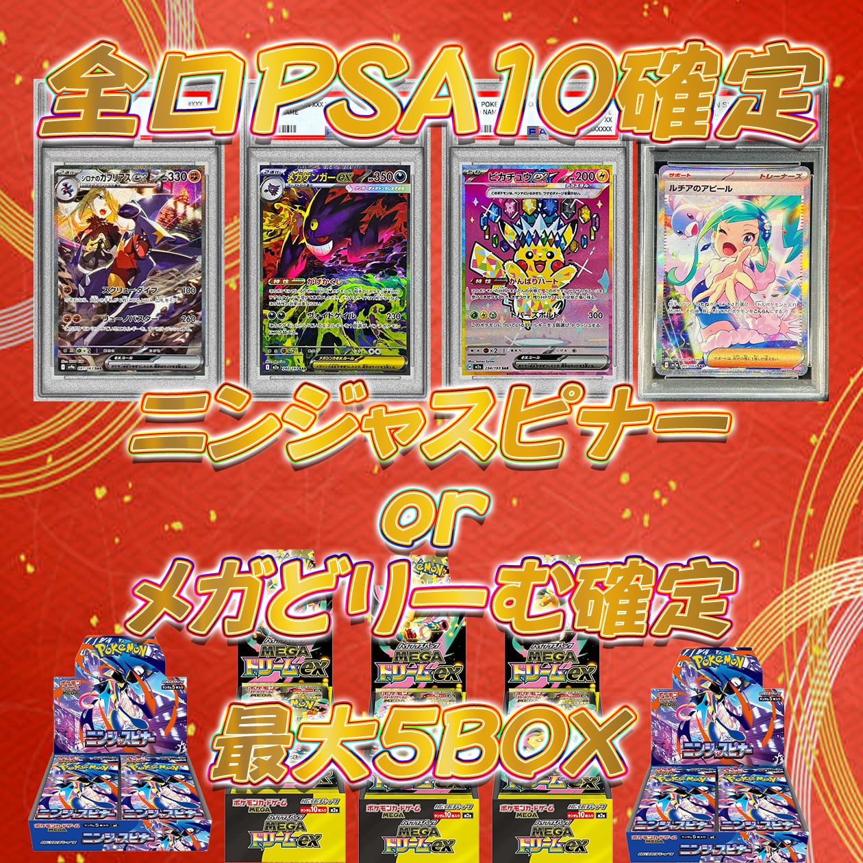 14口限定 ポケカ オリパ メガドリームorニンジャスピナー+PSA10確定 最大5BOX