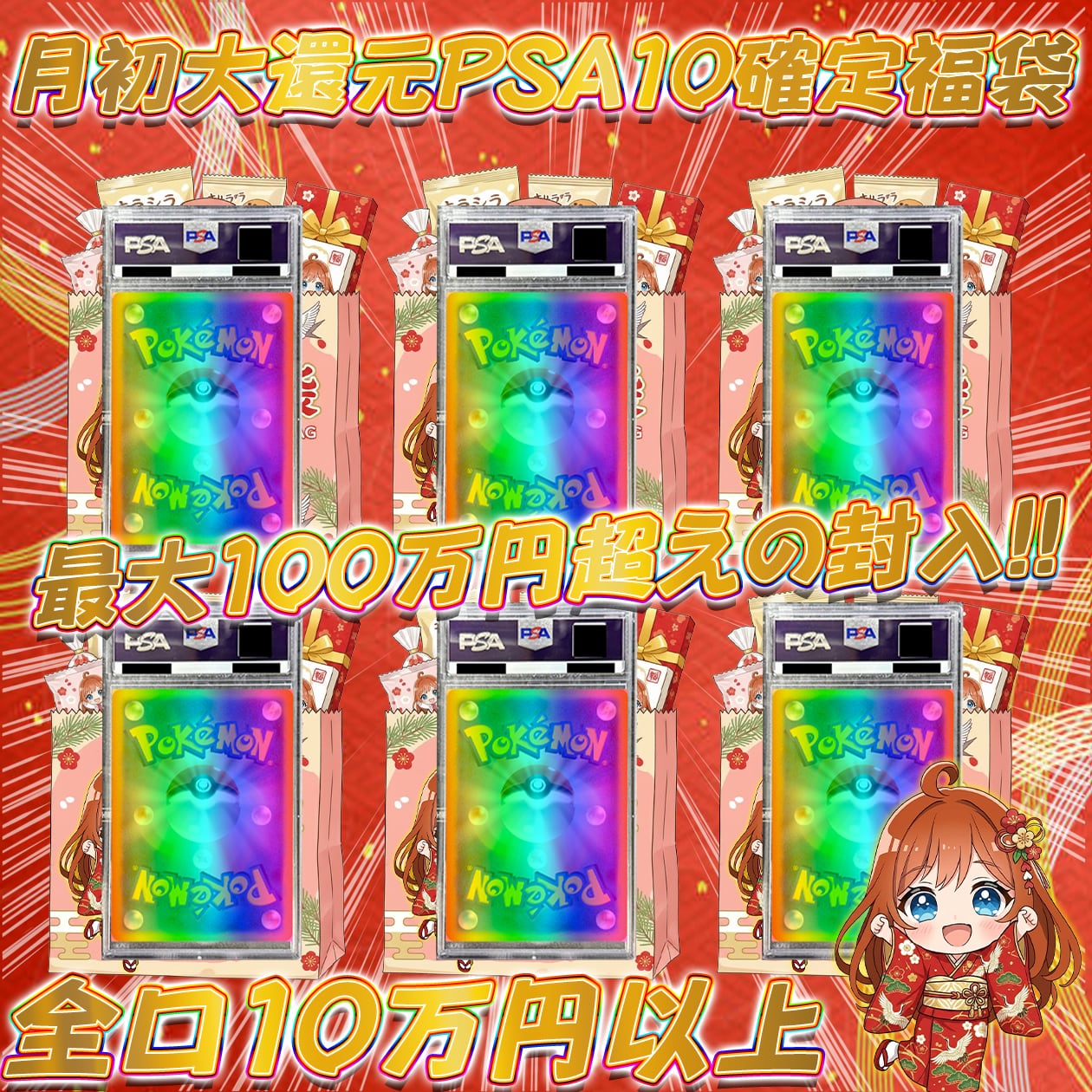 ポケカ 月初の大還元PSA10確定福袋オリパ ポケモンカード 全口100,000円以上!!