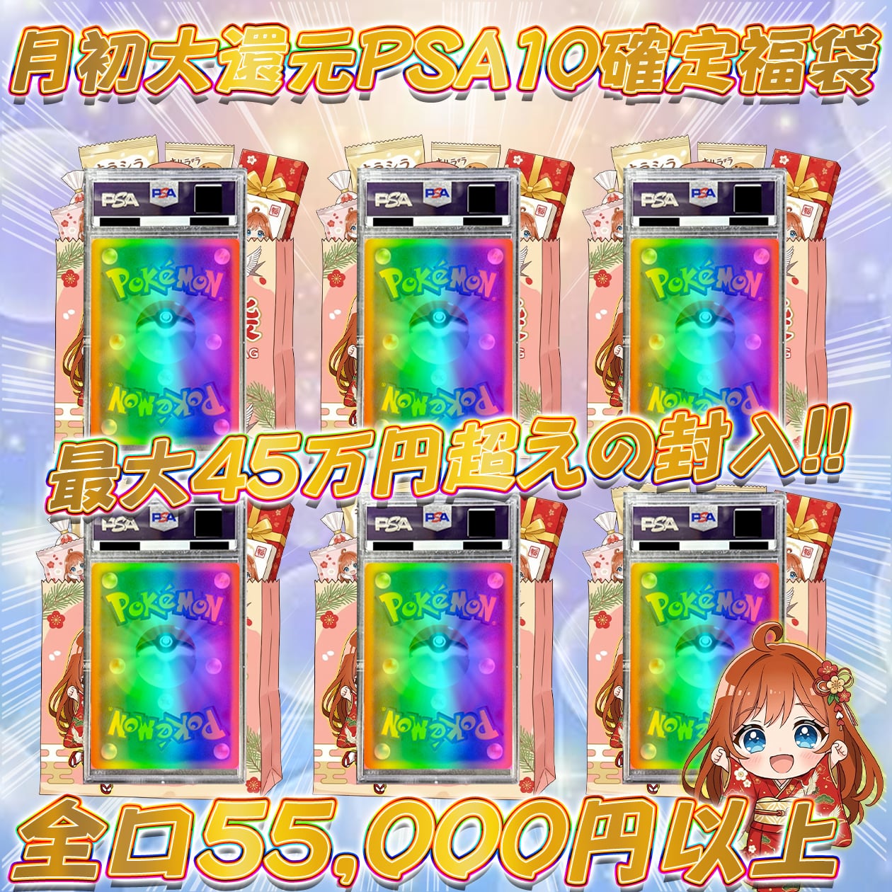 ポケカ 月初の大還元PSA10確定福袋オリパ ポケモンカード 全口55,000円以上!!