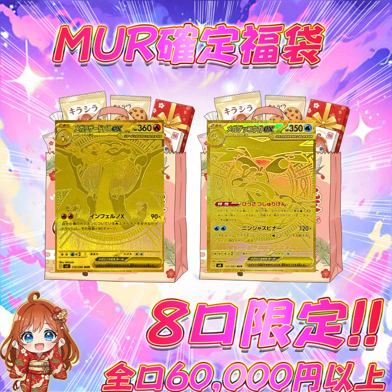 8口限定 ポケカMUR確定福袋オリパ ポケモンカード全口60,000円以上
