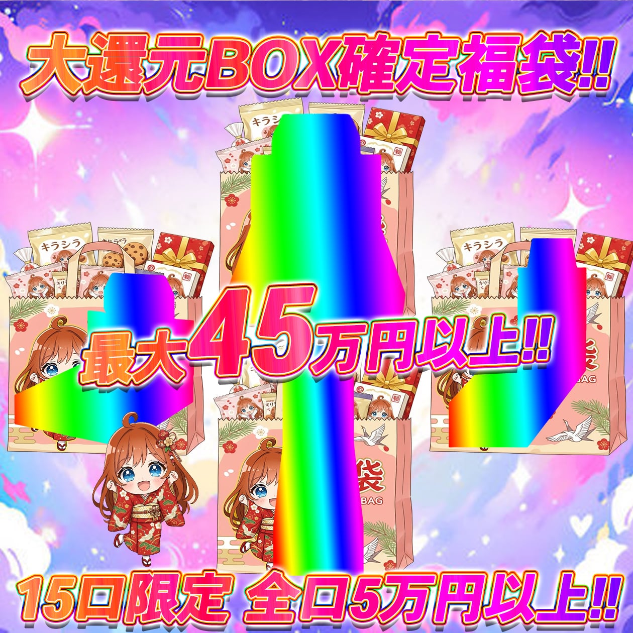 販売価格50,000円〜450,000円超え福袋×15